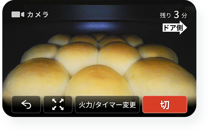 「焼けてきたかな?」が天面のカメラでラクに見える。