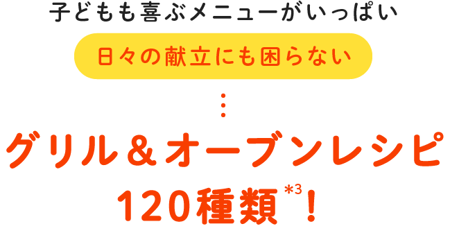 *3 webレシピで紹介しているレシピの数です。「ラク旨グリル」オート:54種類、「ラク旨オーブン」オート:24種類、「ラク旨グリル」手動:6種類、「ラク旨オーブン」手動:25種類、連携調理:11種類。