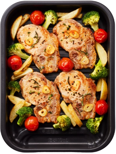 ※分量は肉(魚)1に対して野菜0.6〜0.8倍の重量比率で組み合わせてください。肉(魚)は最大400gまで。肉料理は2〜4人分、魚料理は1〜4人分を目安に調理できます。詳細はこちらをご覧ください。