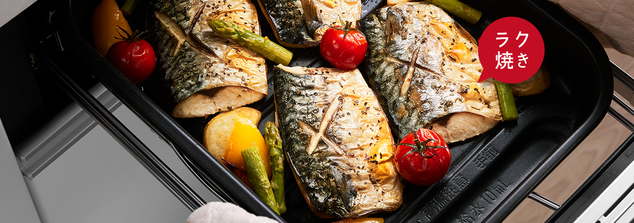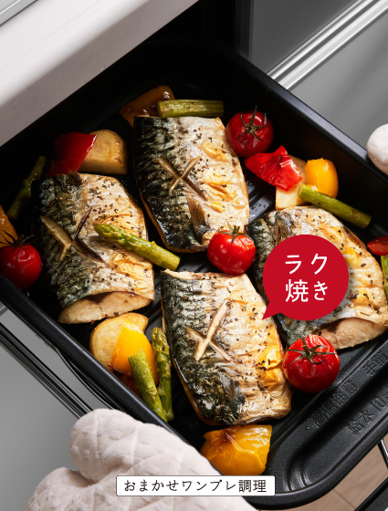 ※国内家庭用IHクッキングヒーターのグリル調理において。温度センサーが皿温度を検知し、加熱時間を自動調整しながら、肉・魚と野菜を一緒にオート調理できる機能。2023年10月20日発売。