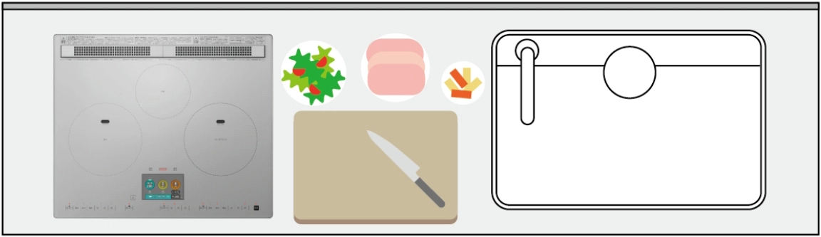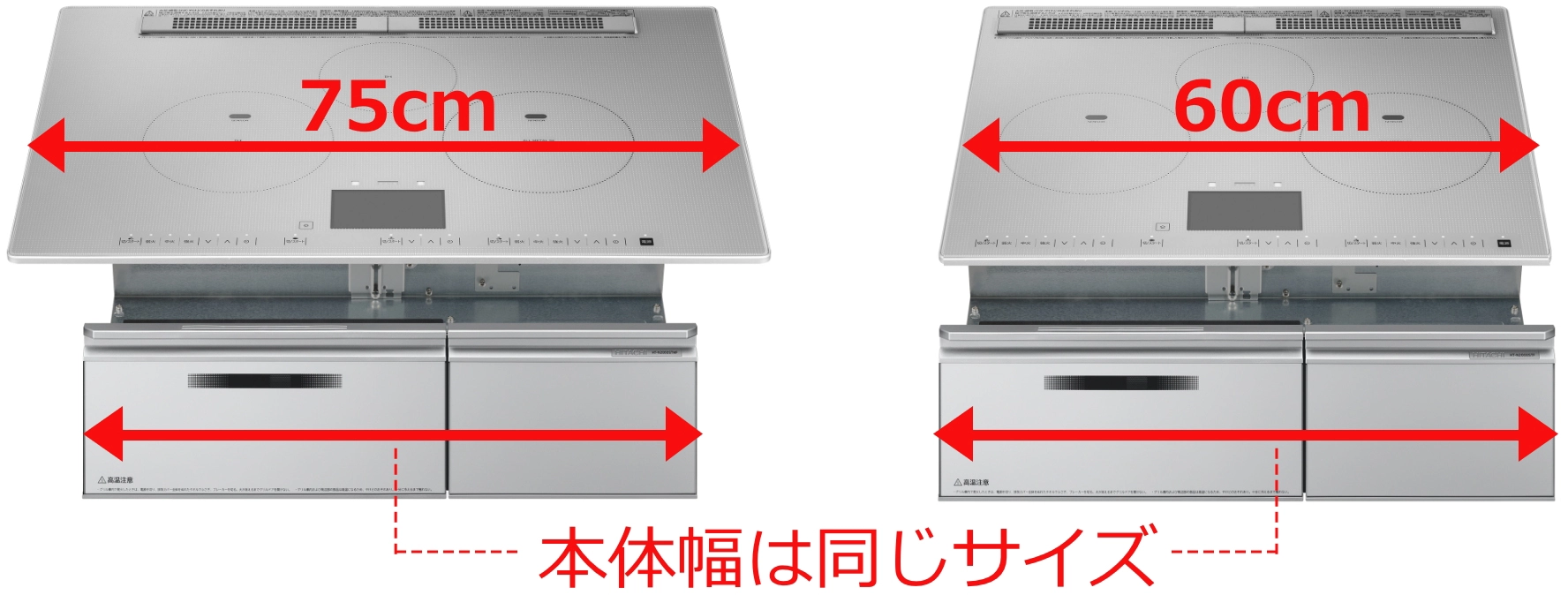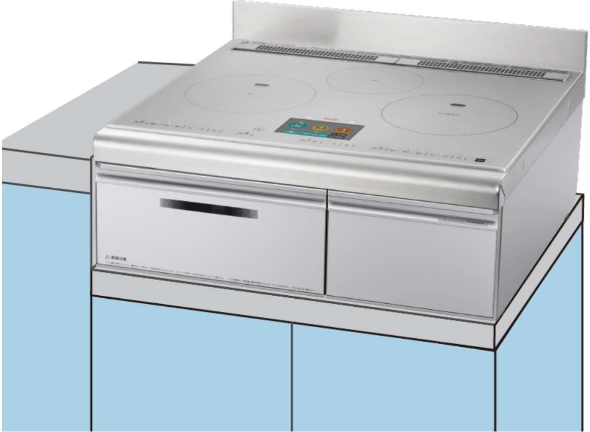 ※流し台よりIHクッキングヒーターの上面が、45mm高くなります。また、流し台のサイズによってはトッププレート幅75cmが設置できない場合がありますので事前に設置可能かご確認ください。