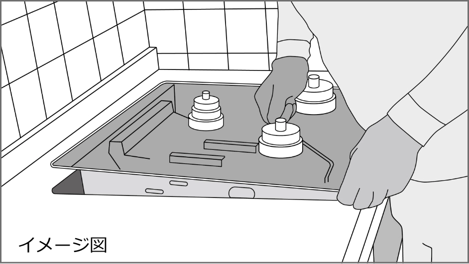 ※キッチンを傷つけないよう、段ボール板を敷いてください。