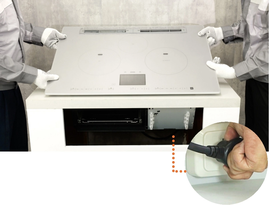 ※ガスコンロから取り替えの場合、単相200Vの電源工事が必要です。