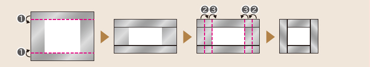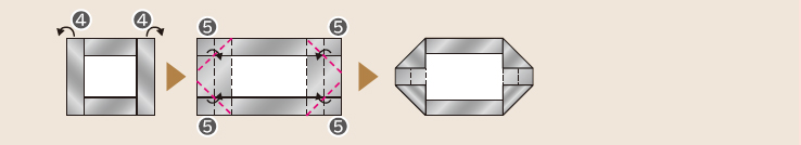 - 2つ折りにした2、3を開いてから5の角を折る。