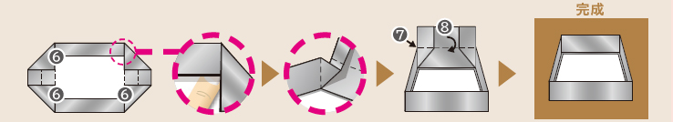 - 6の角になる部分に指を入れて、アルミホイルを立ち上げる。