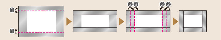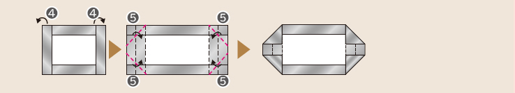 - 2つ折りにした2、3を開いてから5の角を折る。