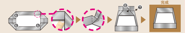 7を折り目に合わせ、三角に折り、最後に8を内側に折り返す。