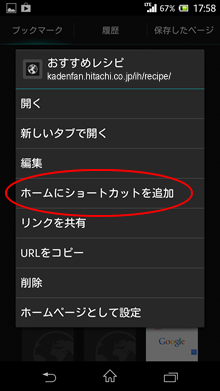 「アイコンを設定する」というメニューが表示されたら、「ホームにショートカット作成」をタップします。