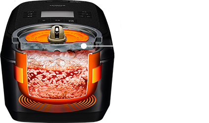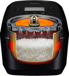 蒸らし時や保温時に[給水レス オートスチーマー]にためた水分をスチームにして送り込む。