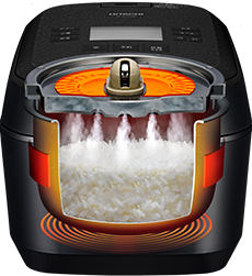 加熱時に発生する蒸気を[給水レス オートスチーマー]にためることで、炊飯器の外に出る蒸気をカット。