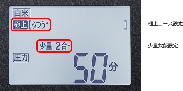 ※「炊込み」「冷凍用」「おかゆ」「おこわ」「わがや流」「エコ炊飯」コースでは選択できません。