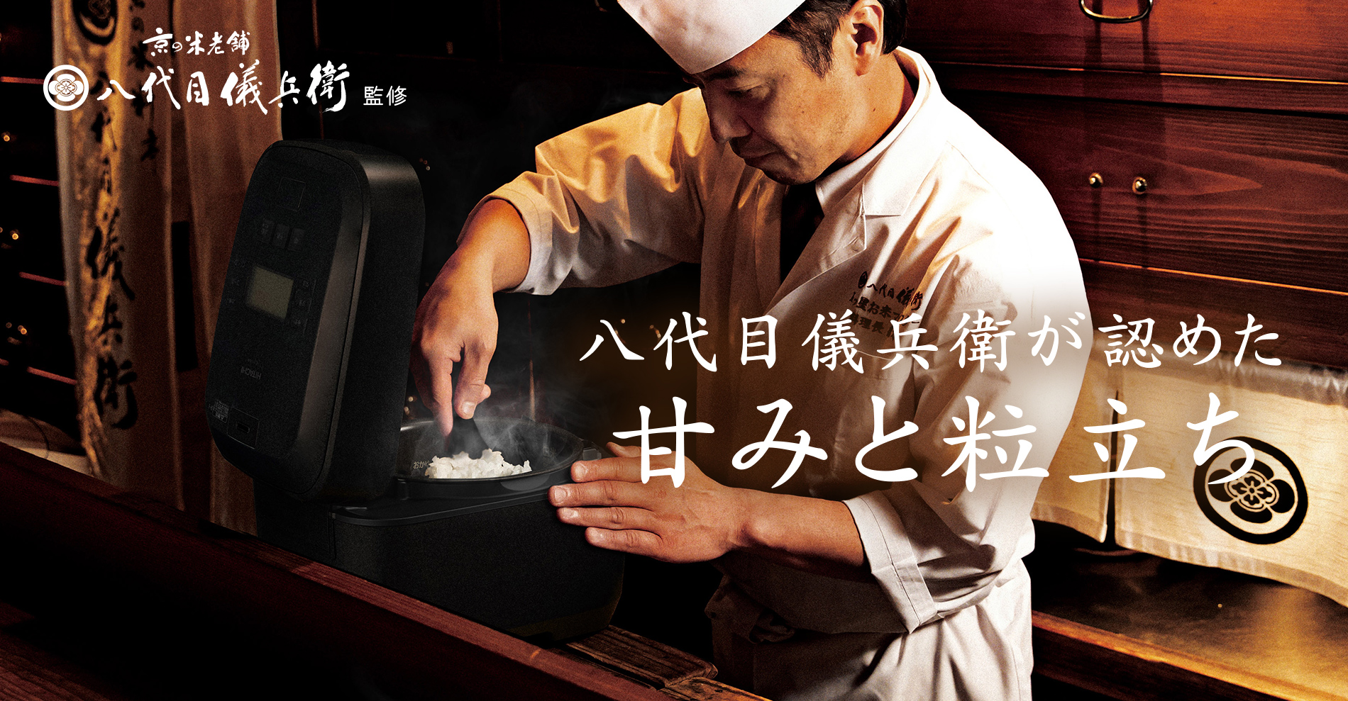 この本当においしいごはんをご家庭に届けたい。京の米老舗 八代目儀兵衛が理想とする炊き上がりを、炊飯器で実現しました。