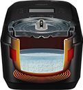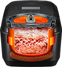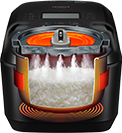 最高1.3気圧まで圧力を上げることで、大火力の加熱と、高温蒸らしを実現。
