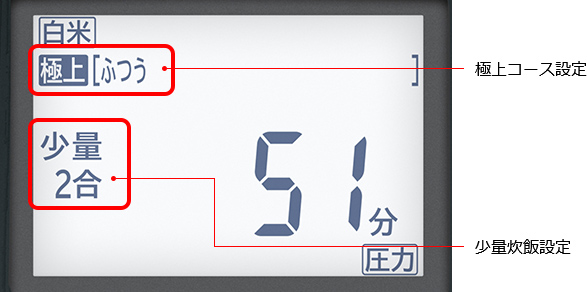 少量炊飯設定時にも、お好みの炊き上がりを選べます。