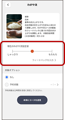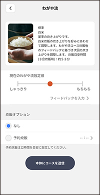 フィードバック(好み)を入力するだけで、次回はより好みに近づけて炊飯します。