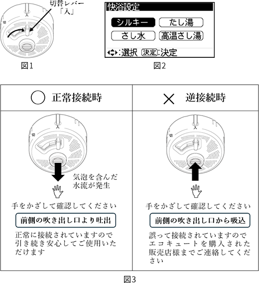 なお、本循環アダプターが正しく施工されている場合(気泡を含んだ水流が発生している場合)には、上記事象は発生いたしませんので、引き続きご心配なくご使用いただけます。