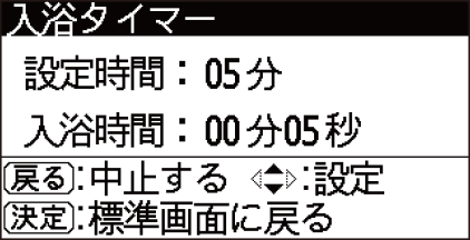 リモコンのメニュー画面より手動で入浴時間をタイマー設定できます。設定時間が経過すると、効果音で通知するのであらかじめ時間を決めて入浴する際の目安になります。