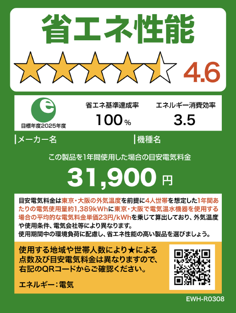 *1 年間給湯保温効率(JIS)は、JIS C 9220:2018に基づき算出した値です。地域や運転モードの設定、ご使用状況等により異なります。