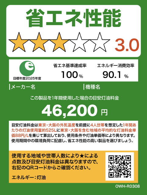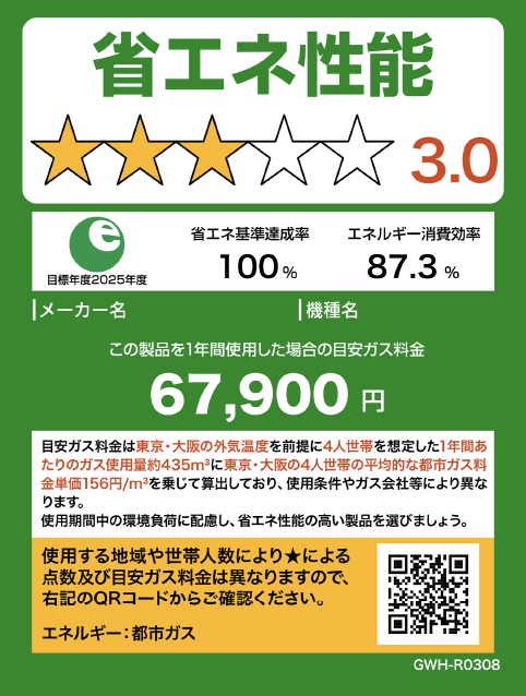 温水機器の小売事業者表示制度が改正され、ガス、石油、電気温水機器の省エネ性能やランニングコストを比較できるようになりました。詳しくは下記「資源エネルギー庁ウェブサイト」よりご確認ください。