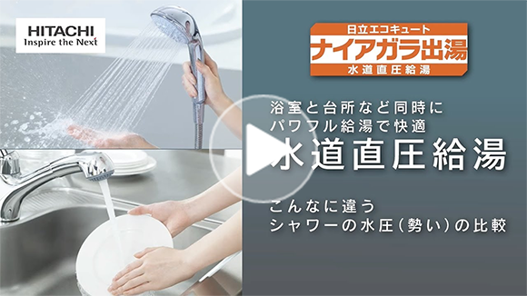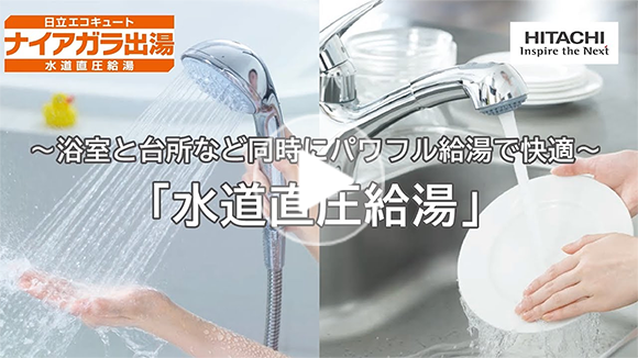 日立エコキュート 「エコキュートのしくみ」~減圧弁方式と水道直圧給湯のちがい~