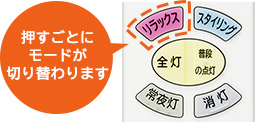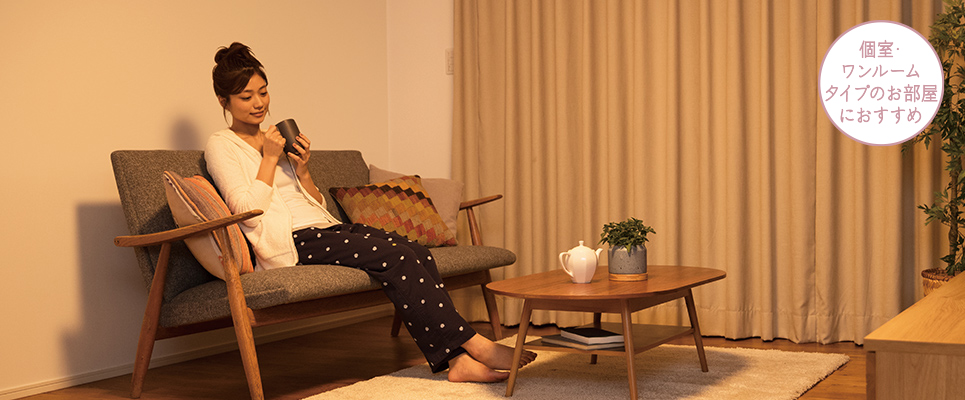 忙しい女性にうれしい[リラックスのあかり]は、帰宅後や就寝前の気分に合わせて、くつろぎ感のある3種類の暖色を選ぶことができます。