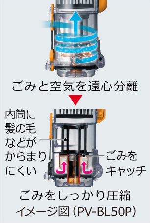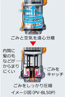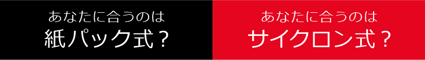 ごみを紙パックにためる「紙パック式」とダストケースにためる「サイクロン式」。