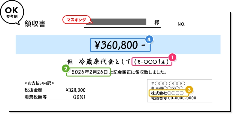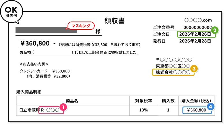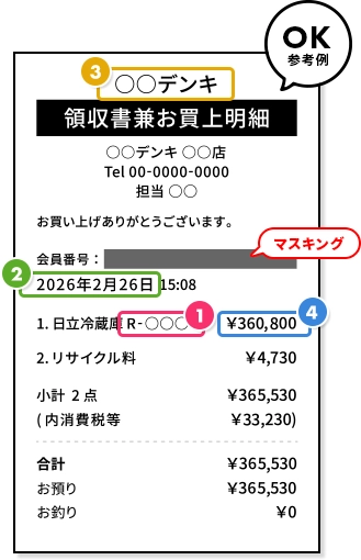 ※ お客さまの氏名、住所、電話番号、販売店の会員番号が入っている場合はマスキングしてください。