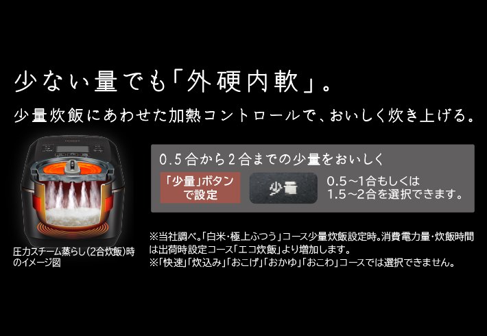 | 炊飯容量 | 1.0L(5.5合) 0.09~1.0L |