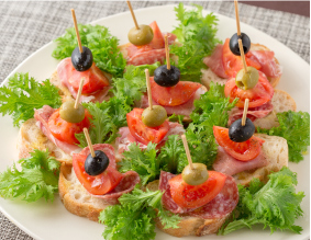 クリームたっぷりのケーキや、きれいに盛り付けたサラダやオードブルも。