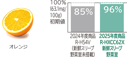 *12 2025年度商品R-HXCC62X新鮮スリープ野菜室(下段スペース)と2024年度商品R-H54V(新鮮スリープ野菜室未搭載)との比較。初期値に対して栄養素を増やす効果はありません。