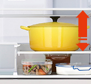 下段右側の棚は、収納したいものに合わせて高さを3段階に調整できます。