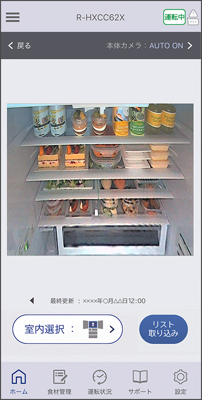 冷蔵室、冷凍室下段、野菜室を開けるたびに自動で撮影。