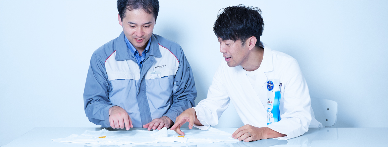北(日立グローバルライフソリューションズ):私たちは洗濯機の洗浄力を向上させるため、構造や制御について考え、試行錯誤を繰り返しています。でも、汚れ落ちは洗濯機と洗剤の組み合わせが重要で、洗濯機だけでは限界があると感じていました。そんなときに、P&Gさんから今までにない「洗濯体験」をめざすべく、新発売の洗濯洗剤と組んで何かできませんか?と、お話をいただいたのがきっかけです。