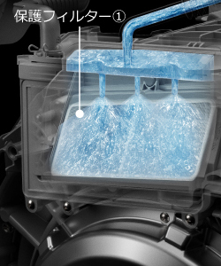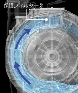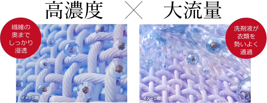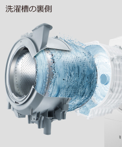 少ない水で高濃度の洗剤液をつくり、衣類にすばやく浸透させて汚れを浮かび上がらせ、大流量の[ナイアガラ循環シャワー]で、きわだつ白さに洗い上げます。