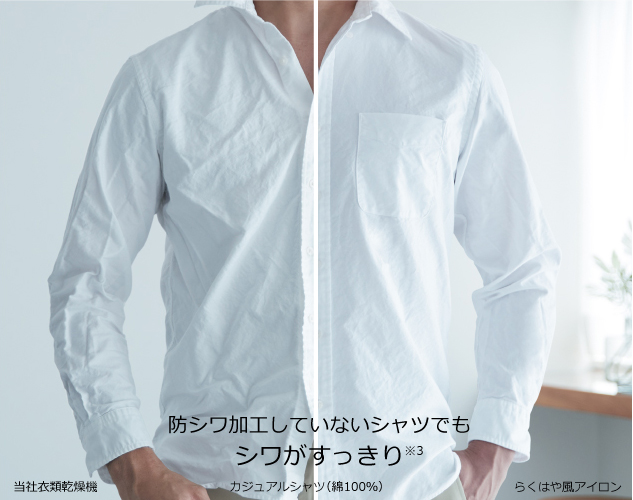 衣類をほぐしながら温風を吹きつけることで、干したときのシワを減らします。衣類が温かいので寒い季節でも衣類が冷たくなりません。