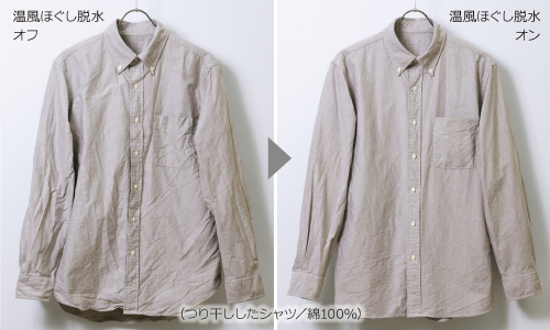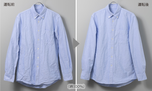 ※当社調べ。洗濯7.8kg運転後につり干ししたシャツ、BD-STX130M、スチームアイロンコース30分において。※衣類の量や素材、一緒に乾燥するものの種類によって仕上がりが異なります。