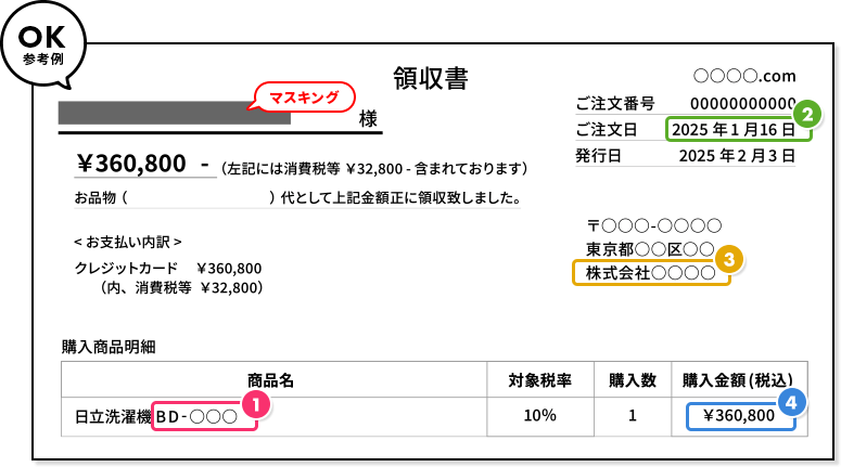※ お客さまの氏名、住所、電話番号、販売店の会員番号が入っている場合はマスキングしてください。