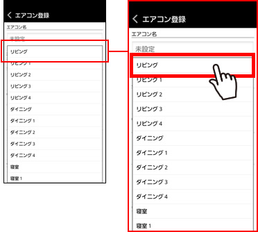 エアコン名(設置場所)を選択します。