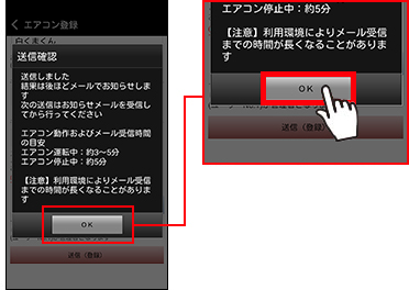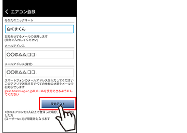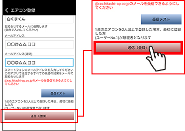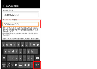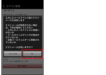 登録が完了するとエアコンからのお知らせメールが届きます。お知らせメールが届くまで他のユーザーの操作も含めて次の送信を行わないでください。