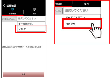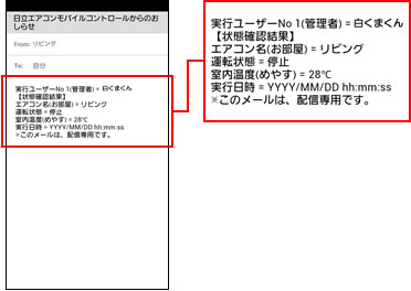 ご指定のエアコンの運転状況をメールでお知らせします。