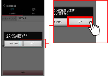 エアコンの運転状態のお知らせメールが全員に届きます。お知らせメールが届くまでアプリを使って別の操作を行わないでください。