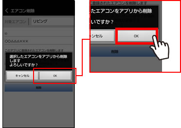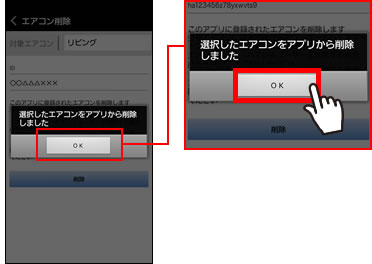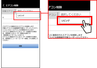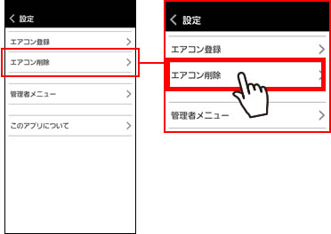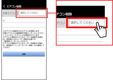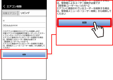 また、削除したいエアコンの管理者にユーザー削除をしてもらってください。