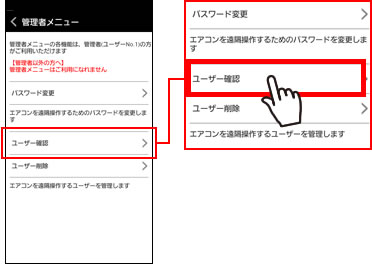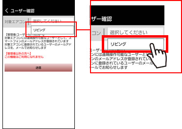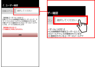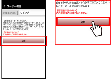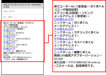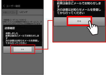 確認を受け付けると、エアコンからユーザー一覧が記載されたお知らせメールが届きます。お知らせメールが届くまで次の送信を行わないでください。
