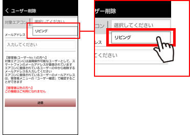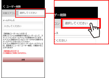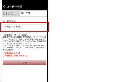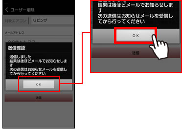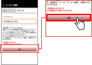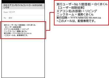 削除が完了すると、エアコンからお知らせメールが届きます。お知らせメールが届くまで次の送信を行わないでください。