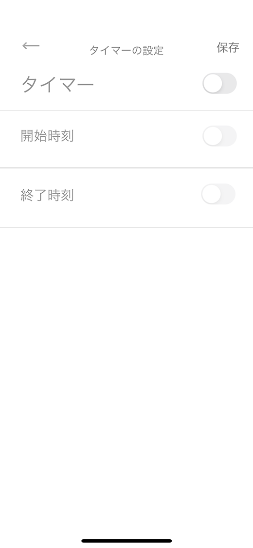 ONしたい場合は開始時刻横のスイッチをONにし、「開始時刻」を設定する。