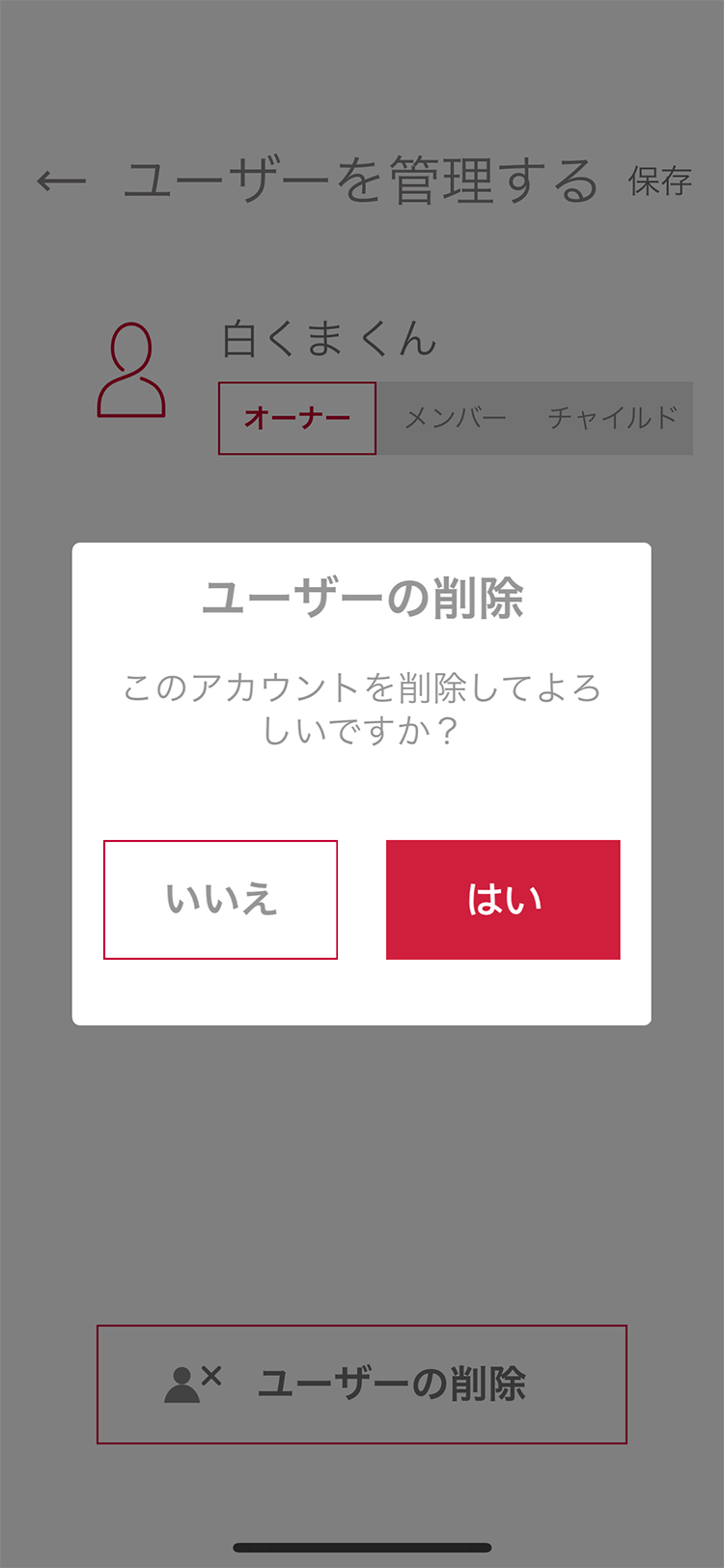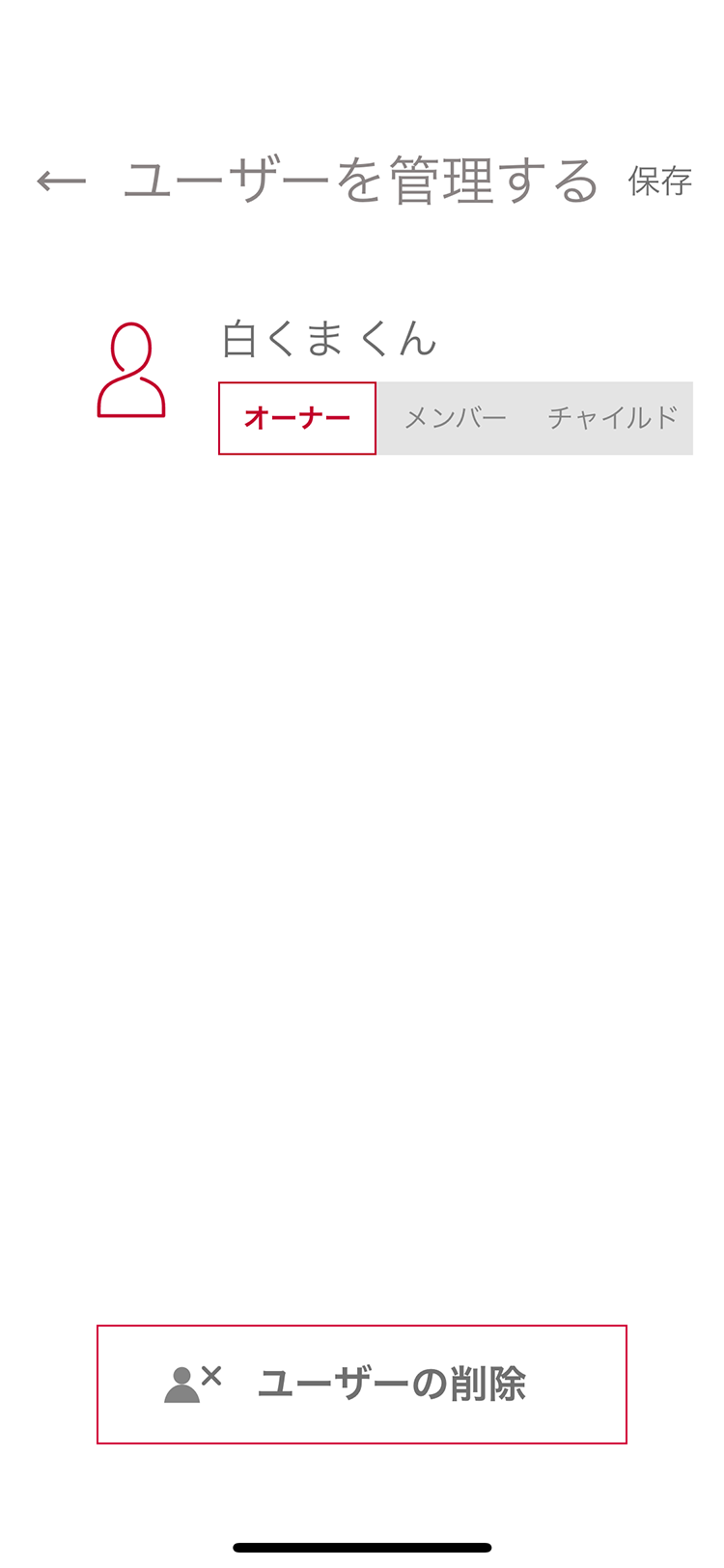 オーナー、メンバー、チャイルドから権限を選択し、右上の「保存」をタップする。