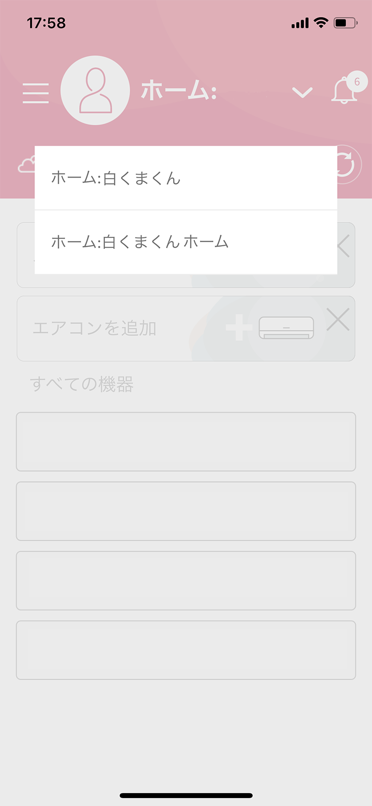 をクリックすることで招待したユーザーのホームを表示し、エアコンを操作することができます。
