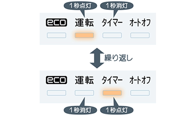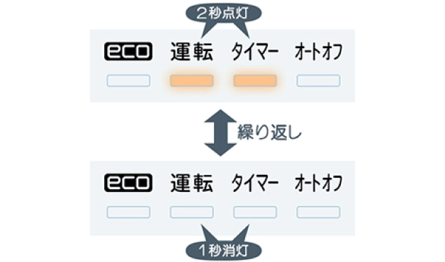 自動点検が開始されると、運転ランプとタイマーランプが同時に点滅(2秒点灯/1秒消灯)を繰り返します。 点検時間は約1分です。
