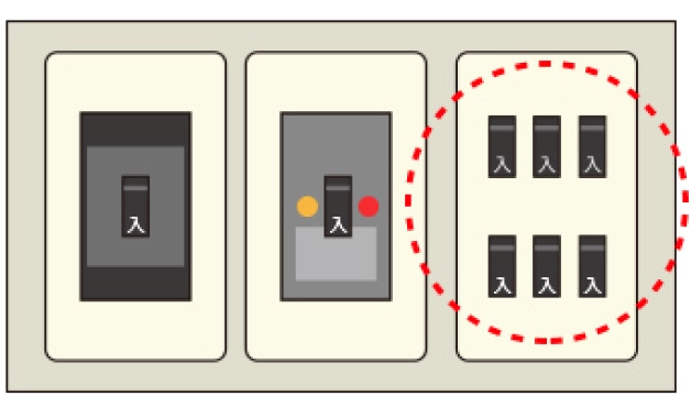 エアコンが接続されている電源のブレーカーが「切」になっている場合は、「入」にしてください。