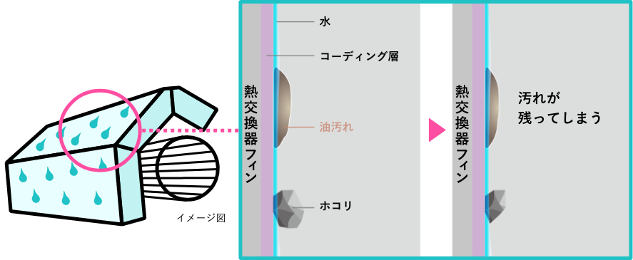 熱交換器コーティングと冷房・除湿運転時の水で洗浄